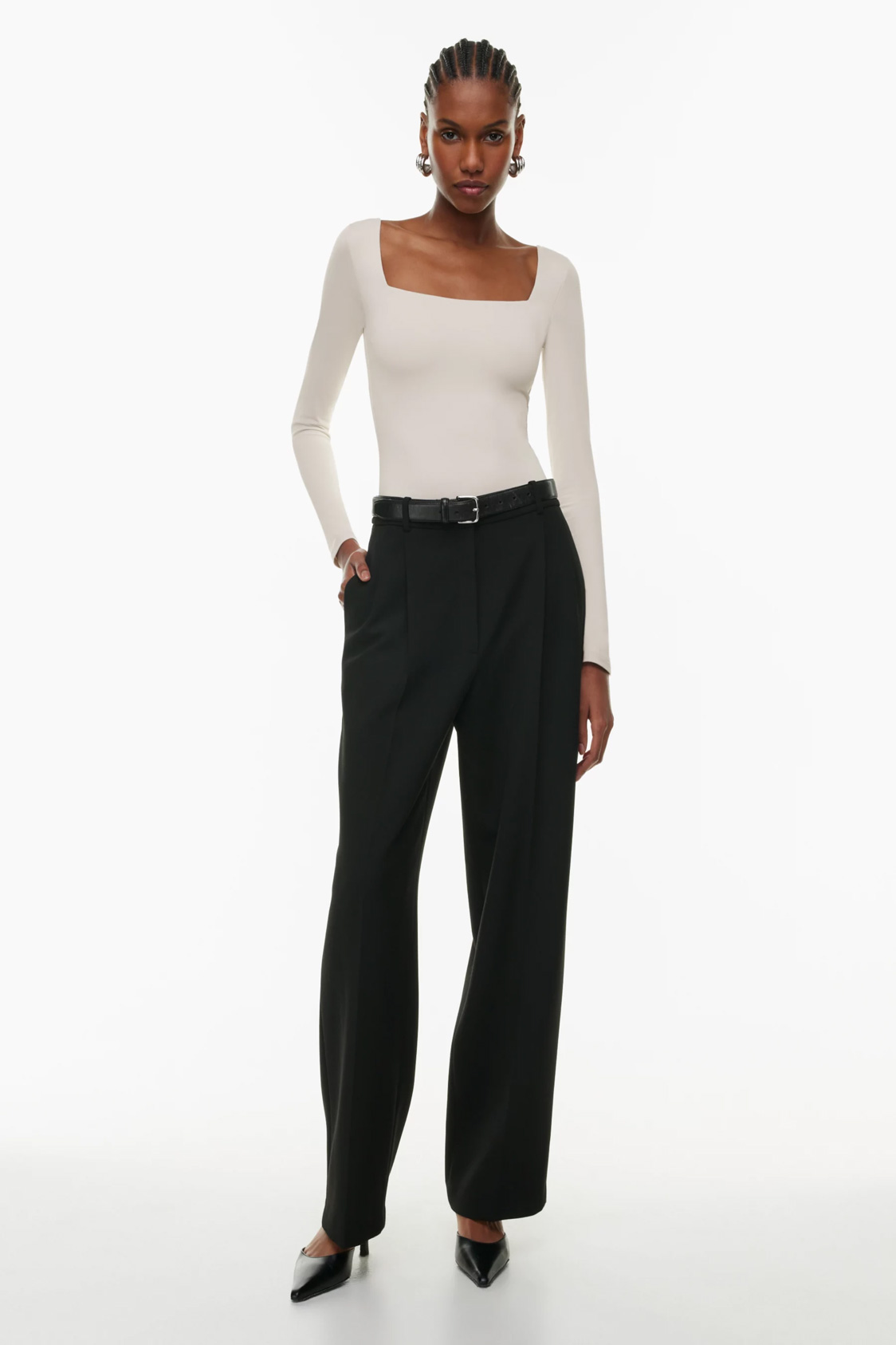 Reimagined in a soft shade of cream, this lambswool Polo Neck has subtle design details such as a contrasting ribbed neck. A saddle shoulder design adds further interest. Wear the neck folded over or upright. Buy this product on https://www.aritzia.com/